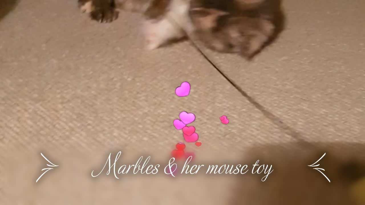 Marbles, the rescue cat plays with her new toy